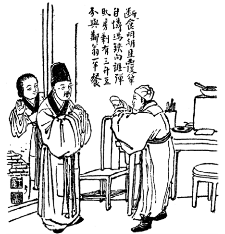 蔼堂妻子看见张老爹去了,便向蔼堂数驳着道:“你一生为人,全不给自己打算,弄到这般地步,还是不肯改变。我做了你的妻子,跟你受苦,真是……”说到这里,竟呜呜咽咽地哭起来了。蔼堂多方譬解,百般劝慰,他妻子仍旧郁郁不乐。蔼堂心有所感,在室内踱来踱去,等到妻子拿出煮熟的黄豆来,蔼堂且不举箸,拿起笔来,在墙壁上题了一首诗道:“断食明朝且覆箪,自怜冯铗向谁弹。卧房剩有三升豆,分与邻翁一半餐。”到了第二天,有一个富人患着噎食症,知道萧蔼堂精于医术,便请他去诊治。蔼堂为他开了一个药方,富人吃了药,霍然而愈,即日差人送了一百两银子来。蔼堂对妻子说道:“我说命不该绝,自有天助,你看,现在不是应了我的话吗?你以后可不用着急了。”他妻子见真的有人送银子来,也就转悲为喜。