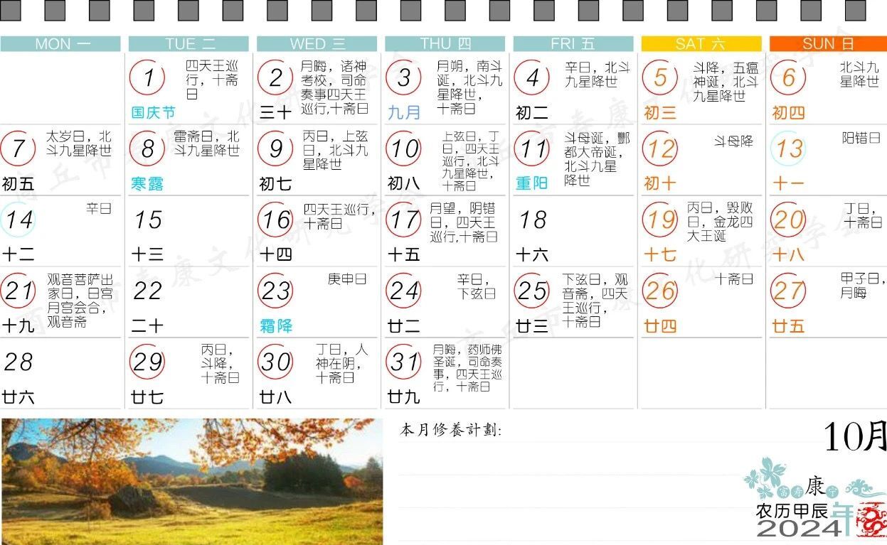 寿康宝鉴2024年台历按月依次发布在下面,可以一目了然地看出禁忌日期。